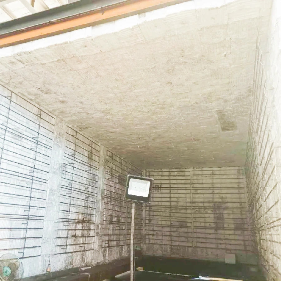 또한 예열 구역의 벽 라이닝 에도 복합 섬유 라이닝을 뿌릴 수 있습니다. 백킹 스프레이 섬유는 일반 유형 또는 표준 유형이 될 수 있으며 작동 뜨거운 표면층은 각각 50~80mm 및 160~200mm의 두께로 고알루미늄 또는 지르코늄 알루미늄 유형 섬유 로 만들어지며 내열성 단열 못이 사전 내장되어 있습니다. 시공층에 따라 하나씩 적층하여 퀵클립과 내열강선을 삽입하여 안감을 고정합니다.